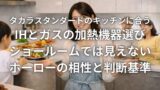 | 毎日自炊・お手入れ時間を短縮したい | 清掃性や家事を楽にする装備への投資で、実質的なコストが安定します。 | レンジフードの分解性、非吸水性の表面の拭き取り回数を見ます。 |