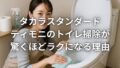 - スポンジやブラシを浮かせれば乾きが早くなり、生乾きの臭いも抑えやすくなります